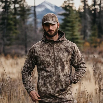 MereSports Custom Men's Merino Wool Half Zip Long Sleeve Hunting Sweatshirt Hoodie Spring Yarn Dyed Print Pattern